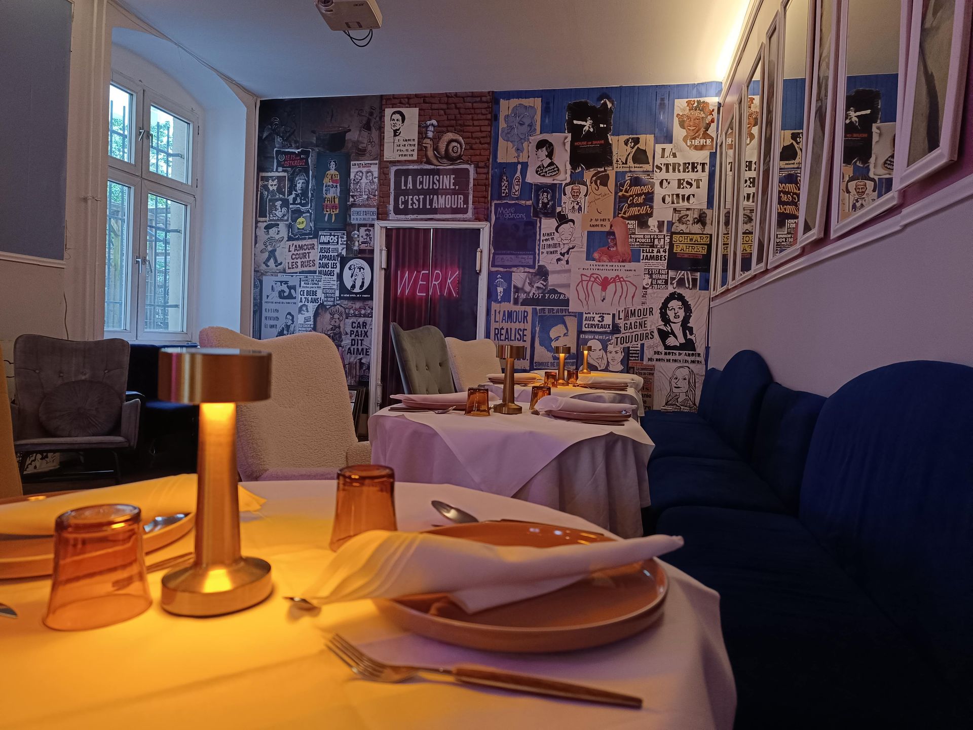 La salle et son élégance minimale prouvant son passé berlinois en quelques affiches