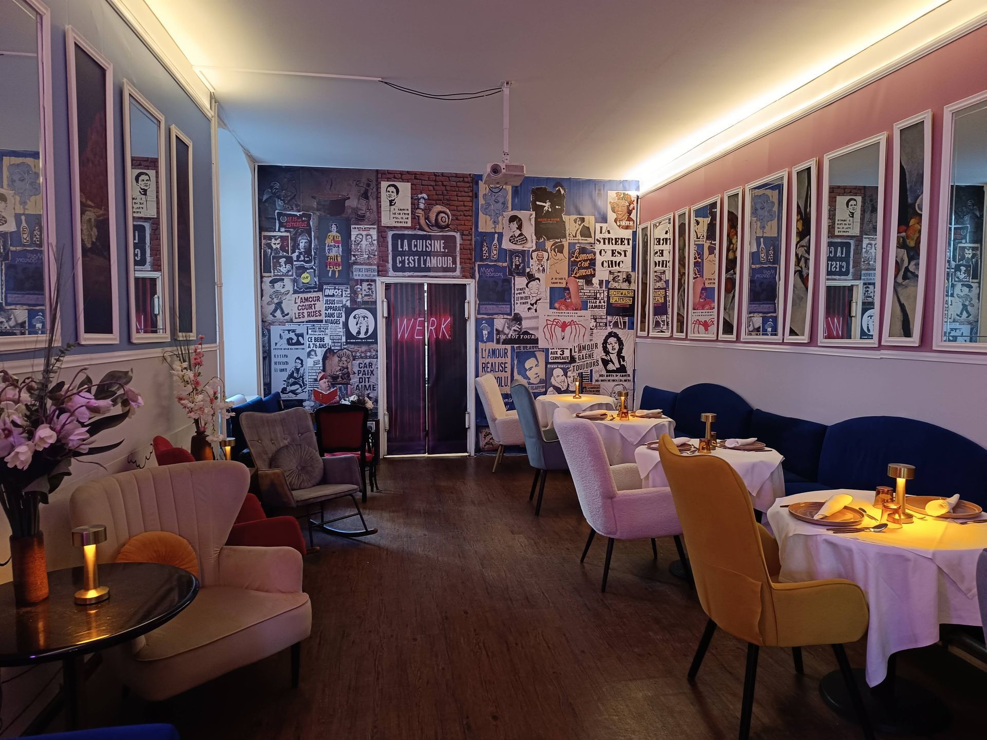 La salle et son élégance minimale prouvant son passé berlinois en quelques affiches